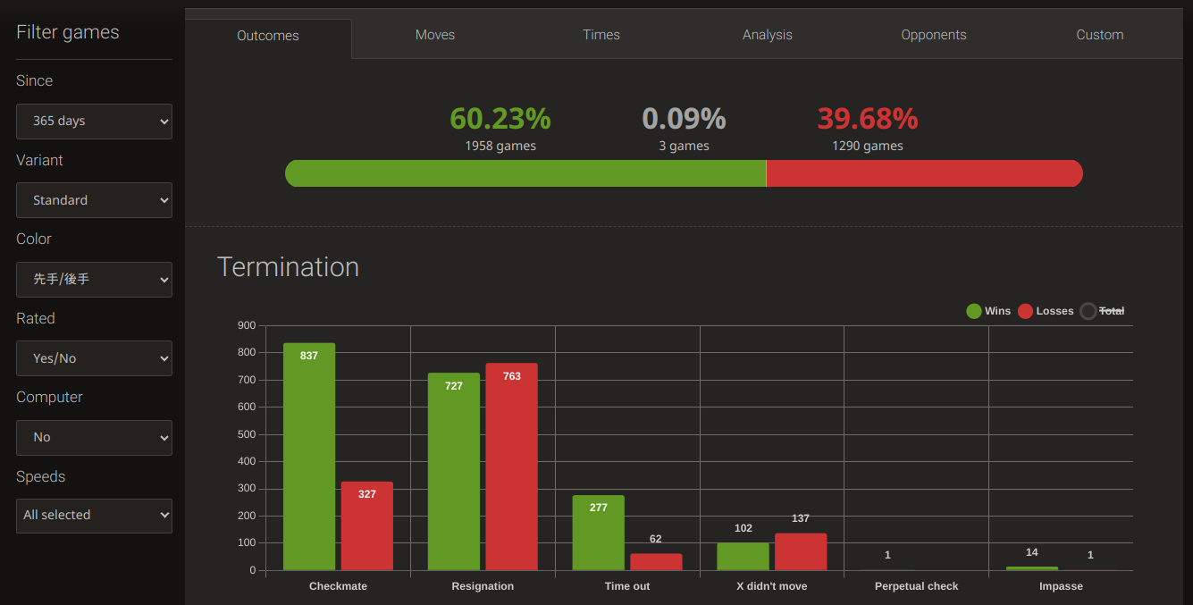 - Times: How long it took you to think of a move, how long you spent thinking in total and more...